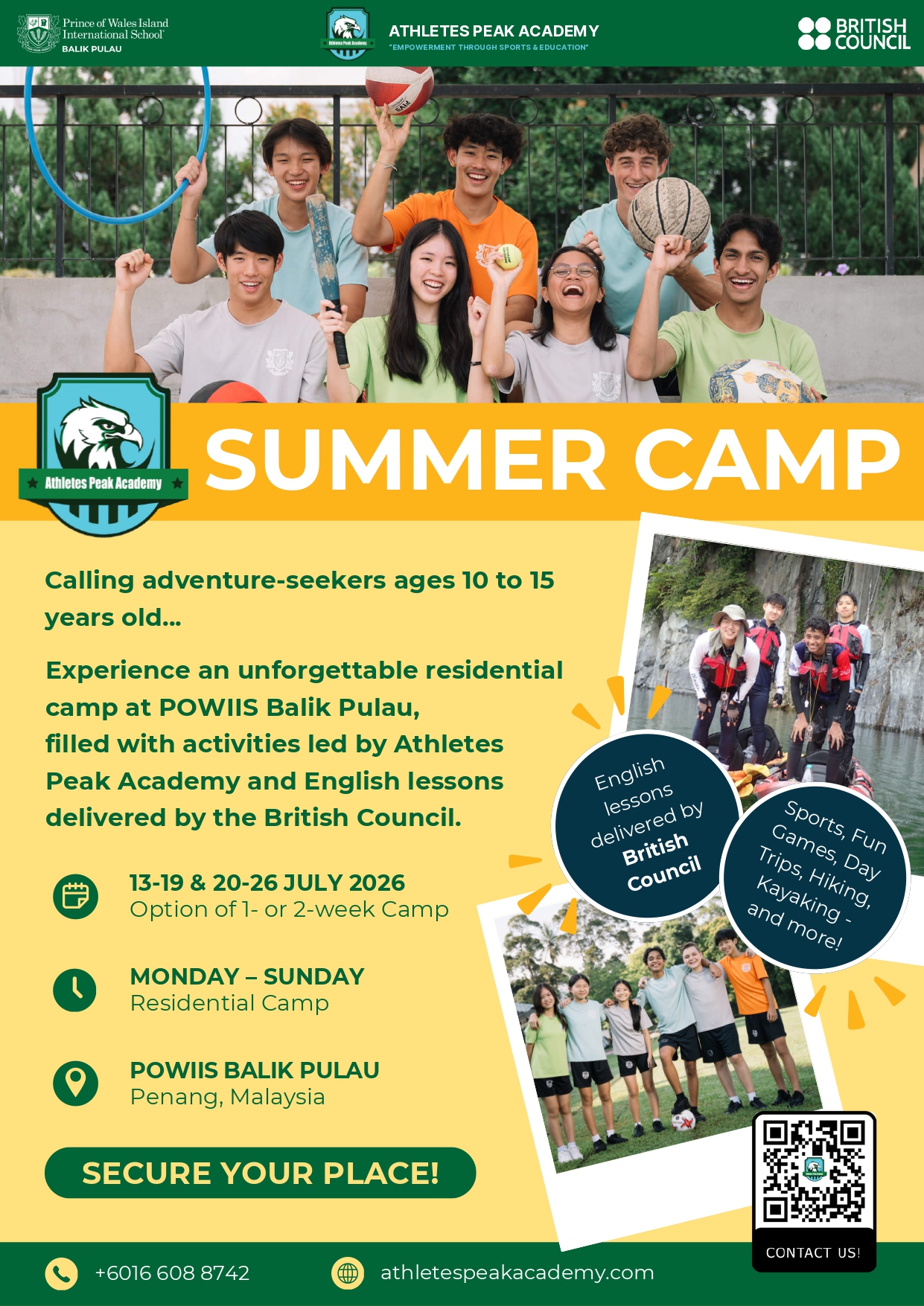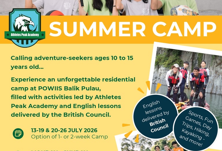 At Athletes Peak Academy , we offer a premium holiday summer camp in Penang, Malaysia, combining sports, English learning, STEAM education, and adventure experiences — all designed to build confidence, leadership, and real-world skills.